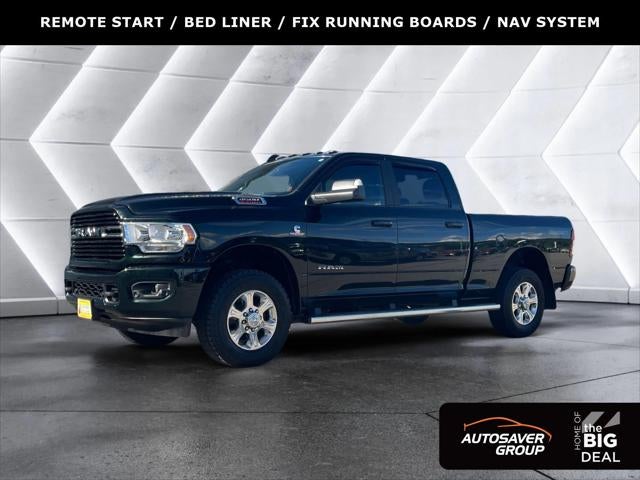 Featured Equipment: 3500 Big Horn, 4D Crew Cab, 6.7L I6, Aisin 6-Speed Automatic, 4WD, Black Forest Green Pearlcoat, Black w/Cloth 40/20/40 Bench Seat, 1-Year SiriusXM Radio Service, 115V Auxiliary Power Outlet, 2 Way Rear Headrest Seat, 220 Amp Alternator, 2nd Row In Floor Storage Bins, 4 Way Front Headrests, 40/20/40 Split Bench Seat, 400W Inverter, 8.4 Touchscreen Display, 9 Alpine Speakers w/Subwoofer, Air Conditioning ATC w/Dual Zone Control, Apple CarPlay, Auto-Dimming Rear-View Mirror, Big Horn Level 2 Equipment Group, Black Interior Accents, Body Color Door Handles, Body Color Grille Surround, Center Hub, Center Stack Storage Drawer, Clearance Lamps, Cluster 7.0 TFT Color Display, Cold Weather Group, Dampened Tailgate, Dual Glove Boxes, Dual Remote USB Port, Engine Block Heater, Foam Bottle Insert (Door Trim Panel), Folding Flat Load Floor Storage, Footwell Courtesy Lamp, For More Info, Call 800-643-2112, Front Armrest w/Cupholders, Front Center Seat Cushion Storage, Front Fog Lamps, Front Seat Back Map Pockets, Glove Box Lamp, Google Android Auto, I/P Mounted Auxiliary Switches, Integrated Center Stack Radio, Leather Wrapped Steering Wheel, Locking Lower Glove Box, Manual Adjust 4-Way Front Passenger Seat, Painted Front Bumper, Painted Rear Bumper, ParkSense Front/Rear Park Assist System, Power 2-Way Driver Lumbar Adjust, Power Adjust 8-Way Driver Seat, Power Adjustable Folding Heated Black Tow Mirrors, Power Adjustable Pedals, Power-Folding Mirrors, Premium Cloth 40/20/40 Bench Seat, Quick Order Package 21Z Big Horn, Radio: Uconnect 4 w/8.4 Display, Rear 60/40 Folding Seat, Rear Dome w/On/Off Switch Lamp, Rear Power Sliding Window, Rear Window Defroster, Remote Start System, Security Alarm, Selectable Tire Fill Alert, Snow Chief Group, Sport Appearance Package, Sport Decal, Steering Wheel Mounted Audio Controls, Sun Visors w/Illuminated Vanity Mirrors, Universal Garage Door Opener, Wheels: 18 x 8.0 Polished Aluminum, Winter Front Grille Cover.